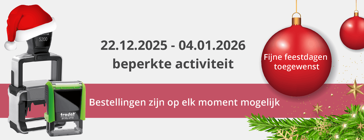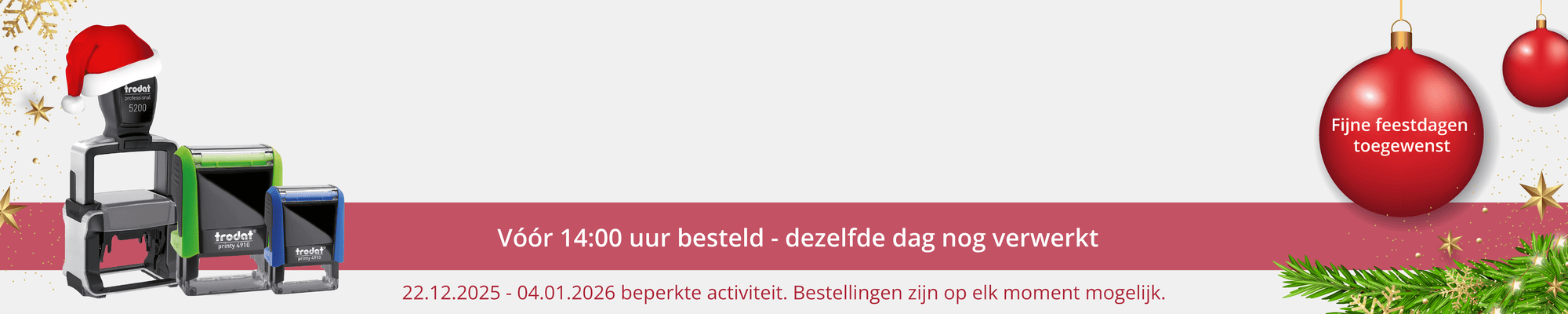 Wij maken uw stempel op werkdagen binnen 24 uur (wij streven ernaar om alle bestellingen die vóór 14.00 uur worden geplaatst nog dezelfde dag te verzenden) en sturen deze rechtstreeks naar u toe – op verzoek ook per expresverzending. Zo ontvangt u uw individueel ontworpen stempel zonder lange wachttijd.