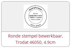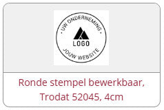 > Een stempel met logo zorgt voor een consistent bedrijfsontwerp op alle documenten, brieven of facturen.